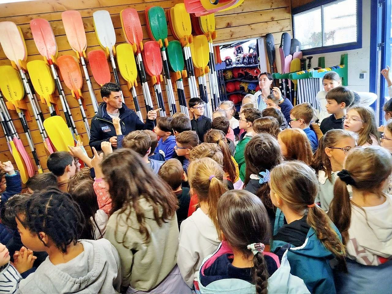 Les élèves des 5 classes de CM ont visité la base nautique du club des Alligators à Landerneau le 11 et 12 septembre dernier. Ils ont pris connaissance des lieux et ont abordé les règles de sécurité avec Alexandre Caillarec avant que ne commence la semaine suivante leur cycle de 8 séances de Kayak.