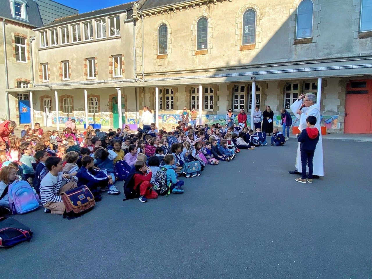 Le 29 et 30 septembre dernier, Philippe Guillou, diacre de la paroisse a célébré la « Bénédiction des Cartables ». Un moment vécu dans la joie par nos élèves, leur souhaitant le meilleur pour prendre un départ en confiance dans cette nouvelle année scolaire.