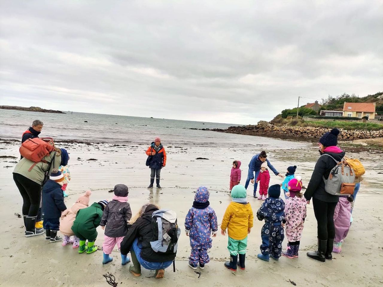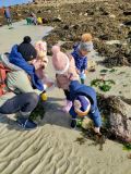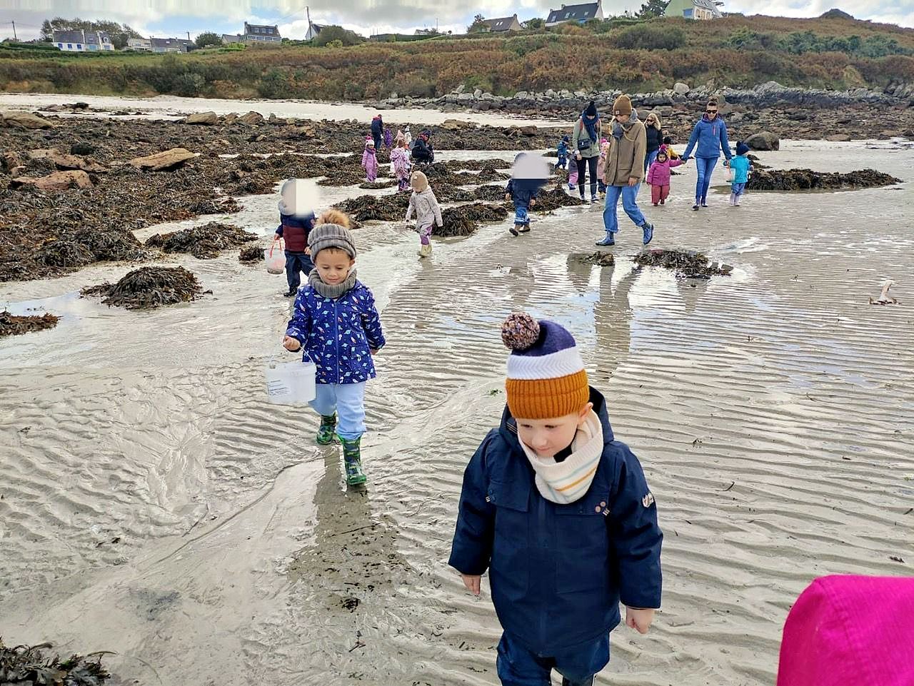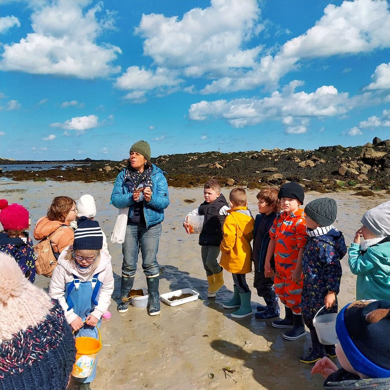 Nos petits élèves de maternelle munis de leurs bottes et leur combinaison d’Ecole du Dehors se sont déplacés à Plouguerneau en septembre et octobre pour découvrir les êtres vivants de l’estran. Danielle Prigent de l’association Piokan a favorisé cette première découverte du milieu marin et a permis à ces petits explorateurs de s’initier à la pêche à pied et au land’art pour mieux s’approprier leur environnement proche.