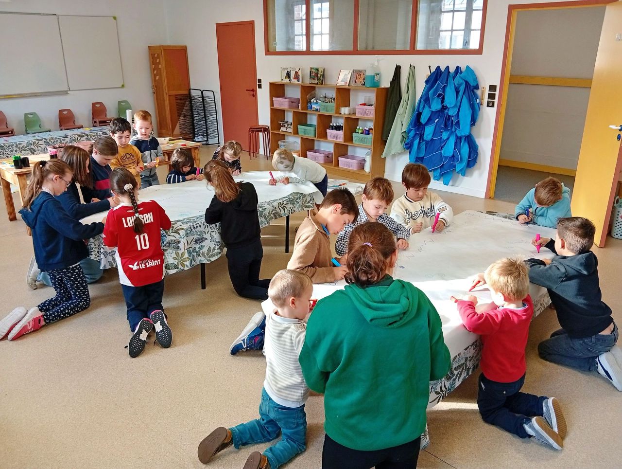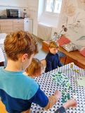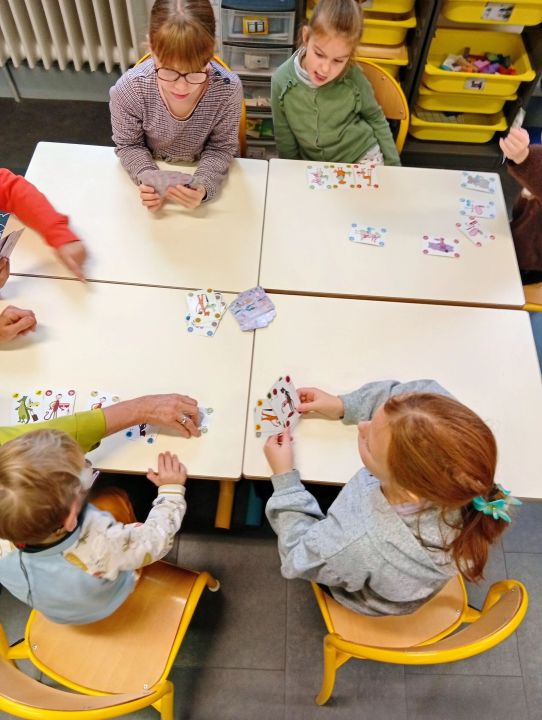 Vendredi 10 octobre, les élèves des 4 classes bilingues se sont mélangés pour une matinée d’ateliers en breton. Au programme : jeux de société, arts plastiques, activités de cohésion, sport, langage, jeux de plateaux…le tout en breton ! Les plus grands se sont montrés très attentifs aux plus jeunes. Tous ont pu s’exprimer en breton et travailler la compréhension orale. Un beau moment de partage !